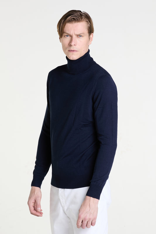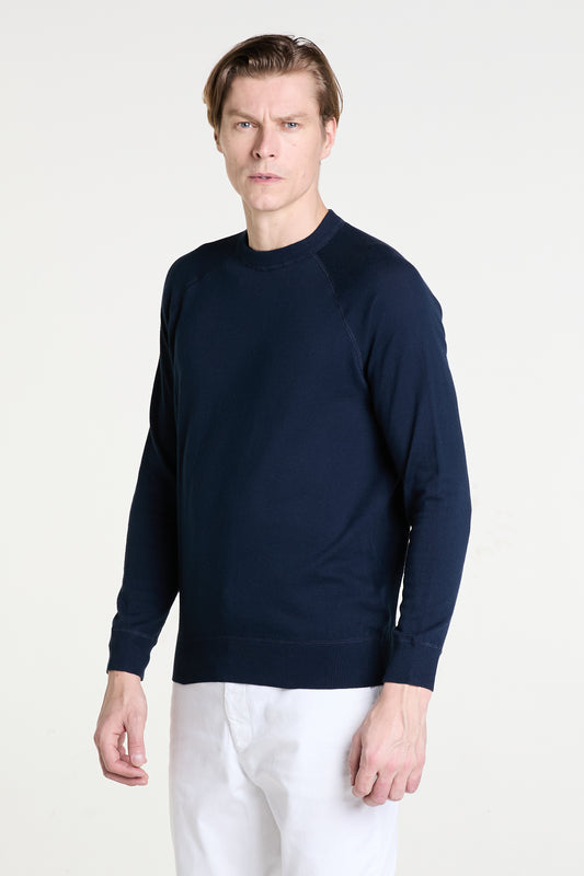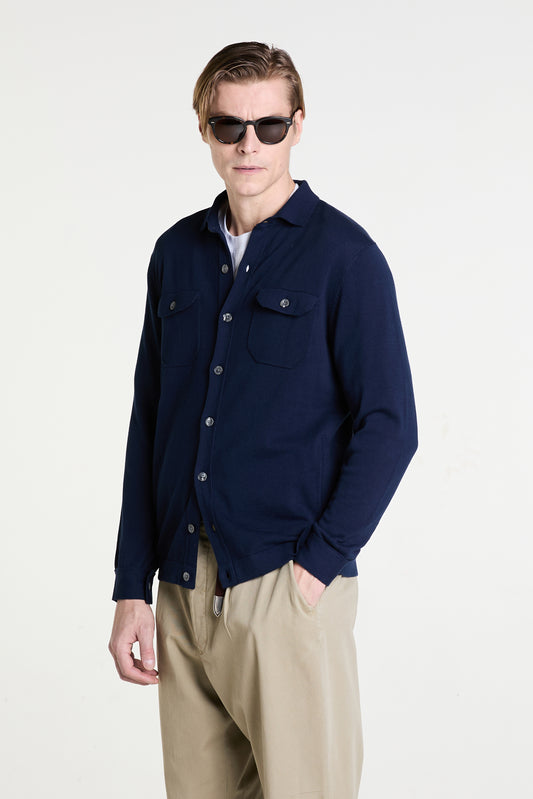 Navy Knitted Overjacket in Superfine Cotton Crèpe