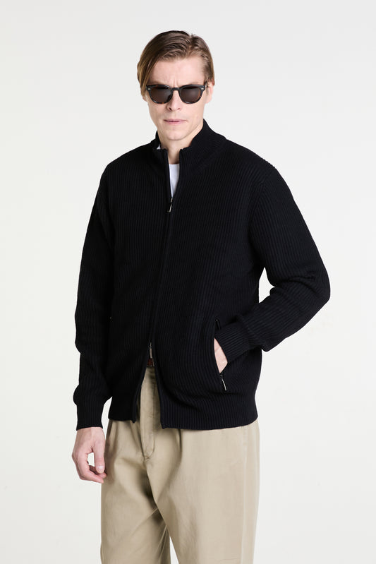 Zipped Turtleneck Sweater in Ribbed Black Cashmere