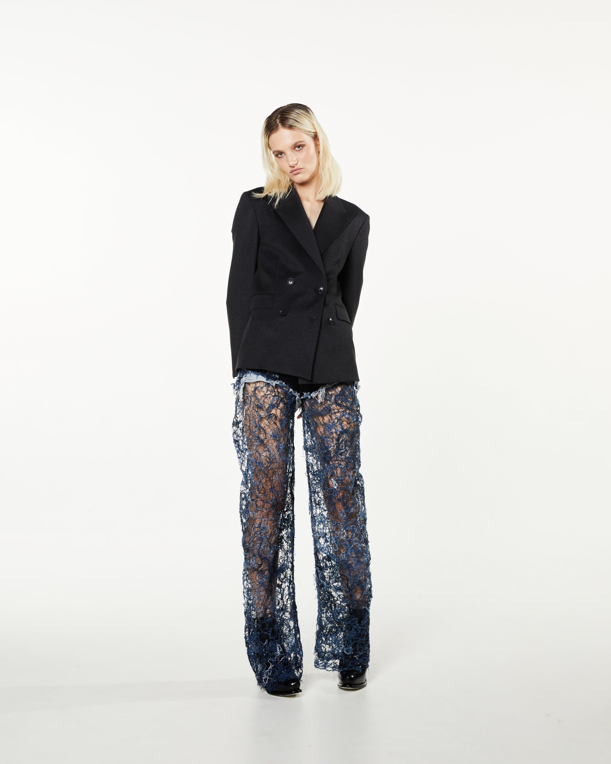 Timeless Denim Look: With its denim-inspired finish and classic peak lapel design, this blazer exudes timeless charm and casual elegance. The rich indigo hue and subtle texture create an authentic denim look, while the double-breasted silhouette adds a touch of sophistication.