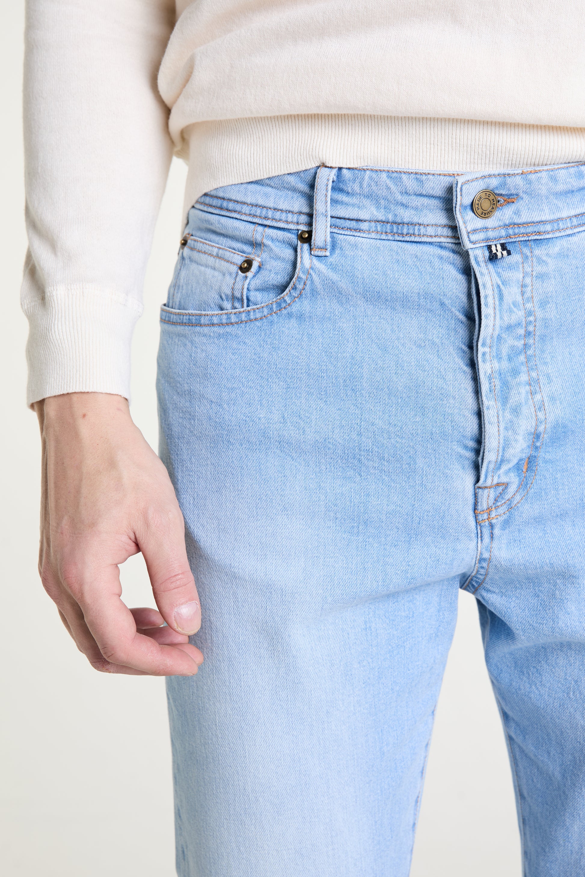 - Premium denim sourced from Candiani, Italy