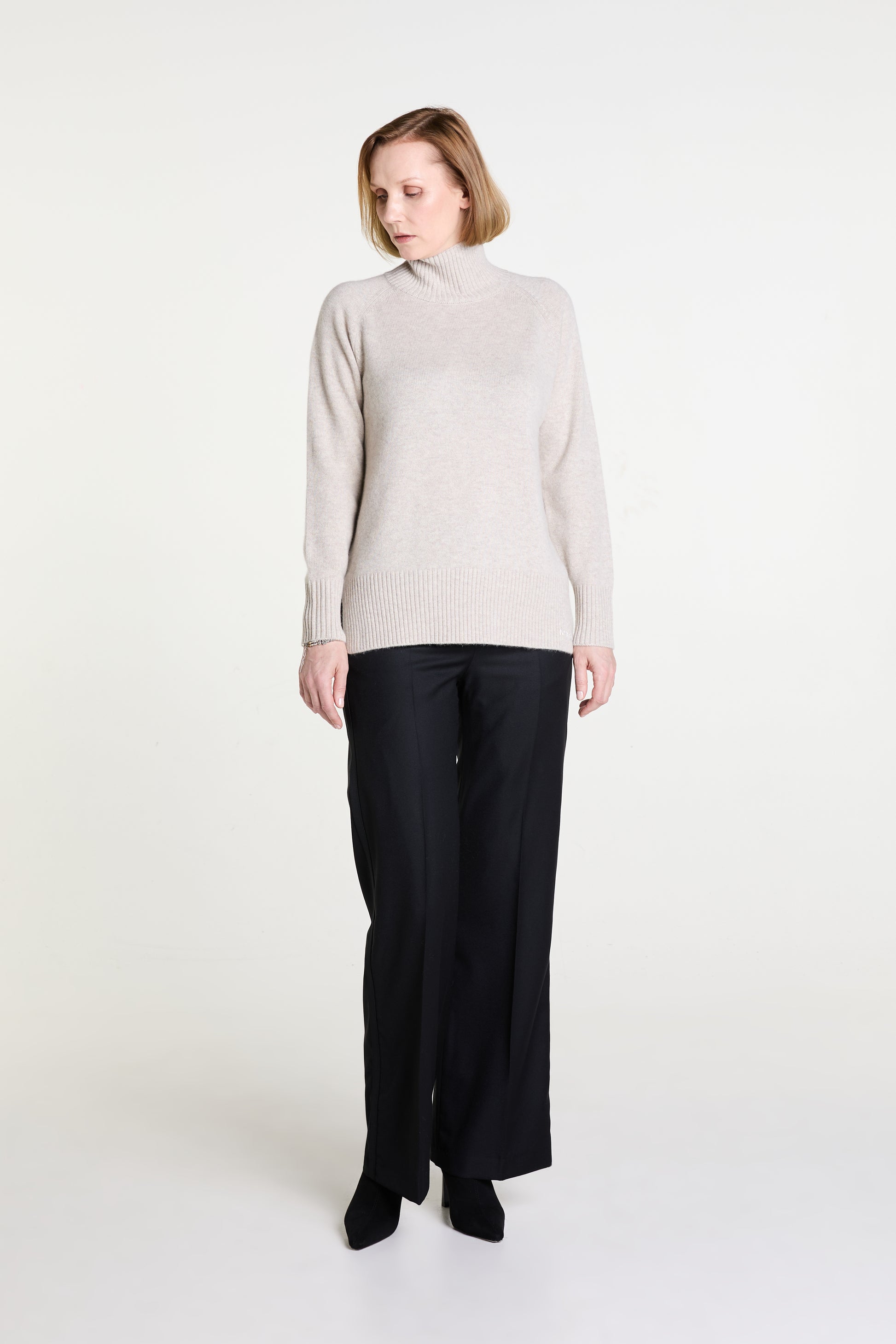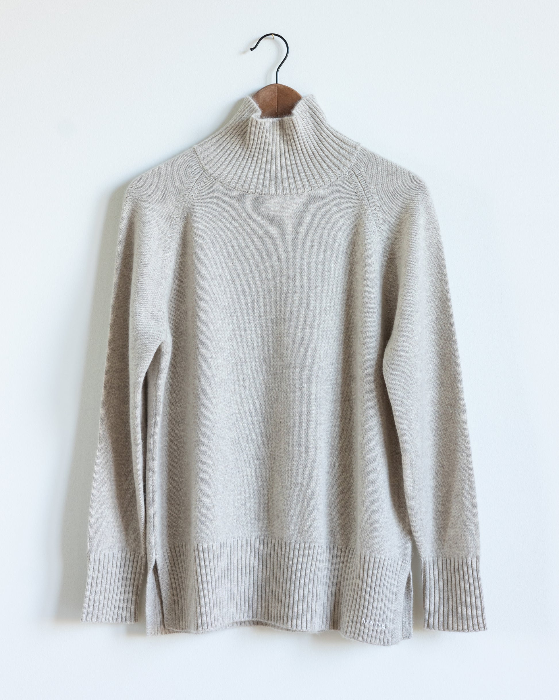 Modern Fit: The NADA turtleneck sweater reimagines a wardrobe classic with a modern relaxed silhouette. Crafted from luxurious, 7-gauge cashmere, it features ribbed edges, subtle side slits for a flawless drape, and a discreet hand-stitched NADA logo on the hem. Pair it effortlessly with tailored trousers for a refined look.
