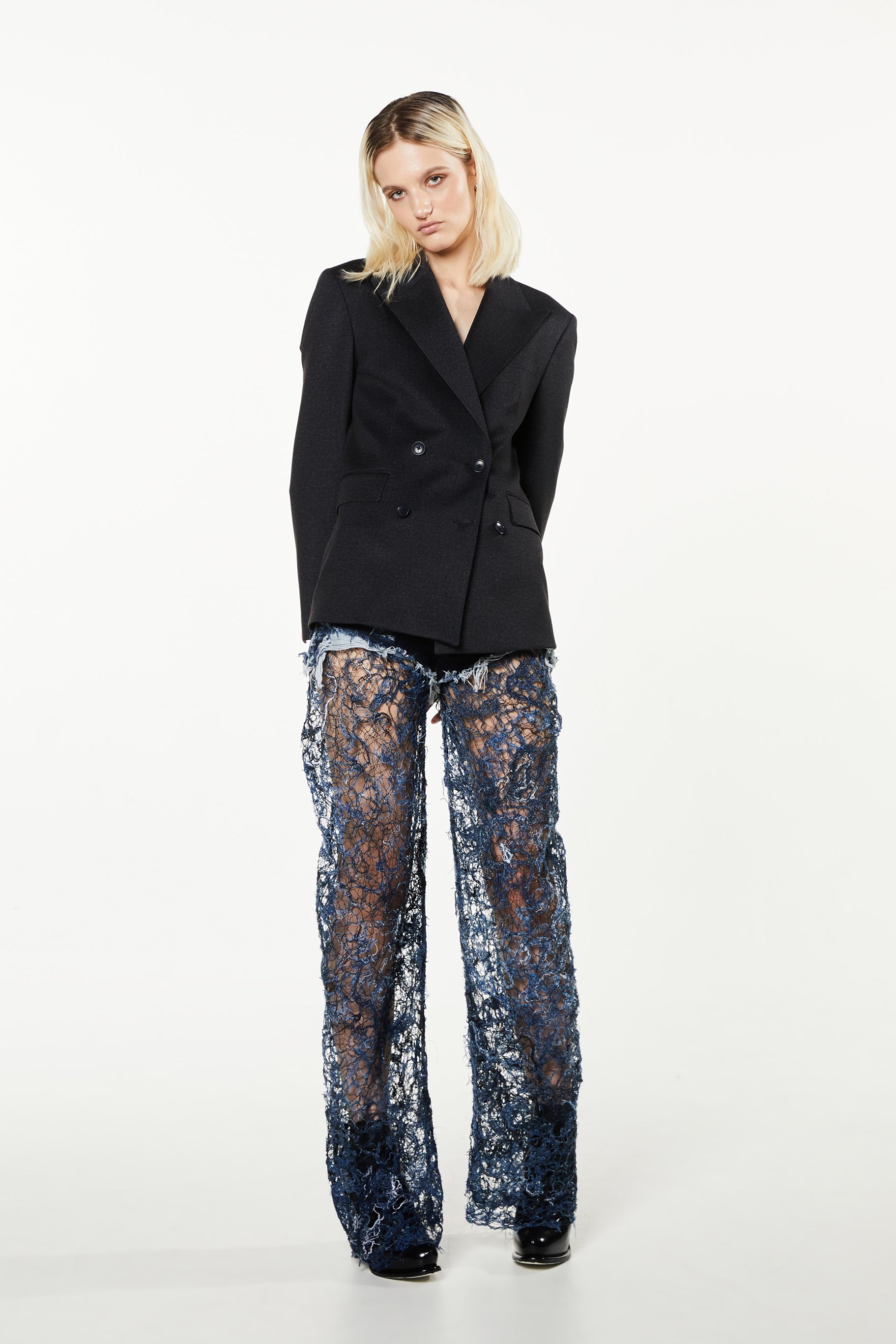 Tailored Fit and Timeless Denim Look: Each blazer is expertly tailored to provide a sleek and flattering silhouette. The double-breasted design and peak lapels add structure and definition to the shoulders, while the jersey fabric drapes effortlessly for a comfortable and stylish fit. With its denim-inspired finish and classic peak lapel design, this blazer exudes timeless charm and casual elegance. The rich indigo hue and subtle texture create an authentic denim look, while the double-breasted silhouette adds a touch of sophistication.